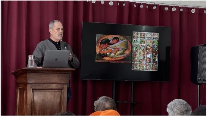 Art historian Jeremy Tessmer, Gallery Director at Sullivan Goss, led a fascinating Lunch & Learn on the historic art collection at the Santa Barbara Club. Tessmer also compiled and published the catalog Art Collection at Santa Barbara Club—funded by the Art Foundation of Santa Barbara—spotlighting nineteenth- and twentieth-century American art and Santa Barbara artists past and present. Tessmer shared insights into the region’s forgotten artist colony and the evolving legacy of the Club’s collection. Ten VADA students attended as special guests and received copies of the catalog; their participation was funded through a grant from the Coeta & Donald Barker Foundation.