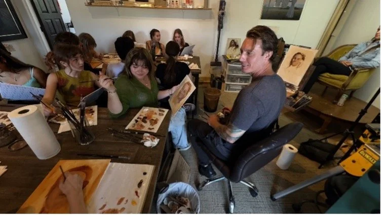 Fifteen VADA seniors immersed themselves in portrait painting during a two-day workshop with acclaimed local artist Derek Harrison. Working from a live model in his downtown El Paseo studio, students honed skills in composition, color, and proportion while gaining insight into the business of art. Guided alongside AP Studio Art teacher Daniel Barnett, the experience offered rare, hands-on learning made possible by the Art Foundation and the Coeta and Donald Barker Foundation.