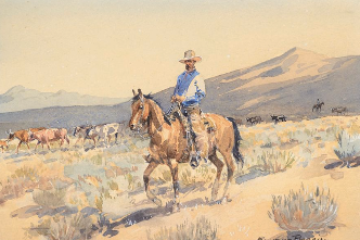 A core purpose of the Art Foundation is to serve to preserve the culture of early and contemporary Santa Barbara art and artists through select art donation(s), including tax-deductible gifts of art. In 2025, we received a generous donation from George Burtness of four rare watercolor paintings by artist Edward Borein. Borein (1872–1945), known as the “cowpuncher artist,” was also a resident of Santa Barbara. He captured the authentic life of the American West in watercolor, ink, and etchings, drawing on his experiences as a working cowhand. We extend our heartfelt thanks to George for this exceptional contribution.